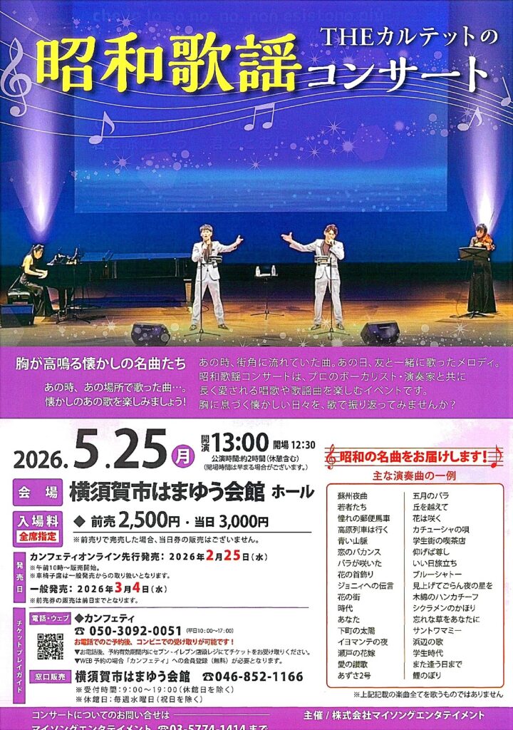●電話予約・窓口販売:横須賀市はまゆう会館 ☎046ー852-1166(平日9:00~19:00)※休館日を除く