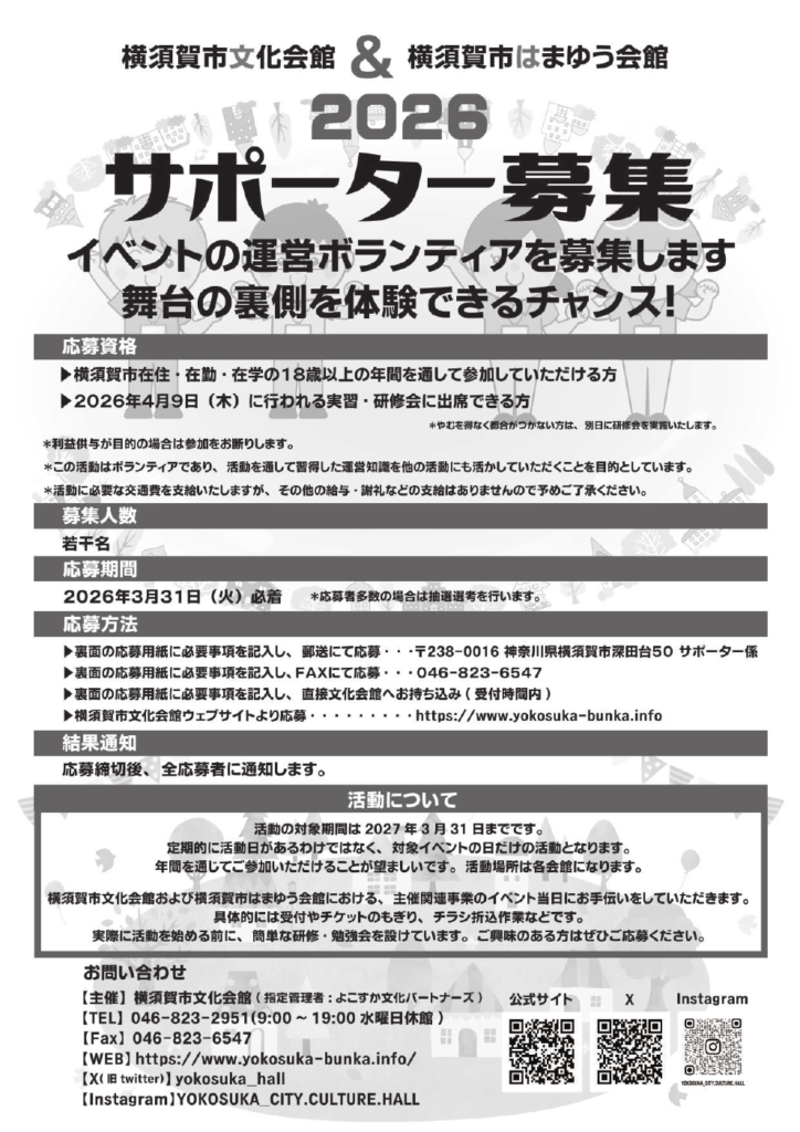 いつも横須賀市文化会館・はまゆう会館をご利用いただき、ありがとうございます。